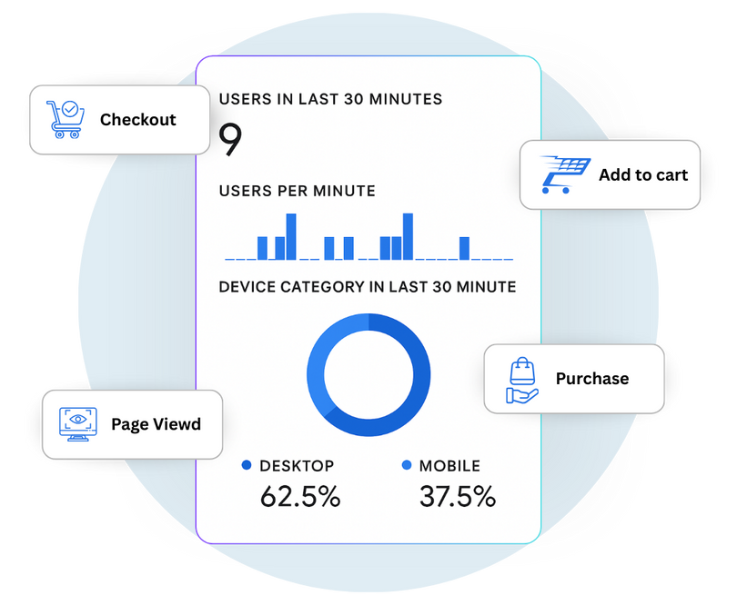 Accurate Event Tracking Automatically track key e-commerce events like purchases, add-to cart, and checkout for precise insights.